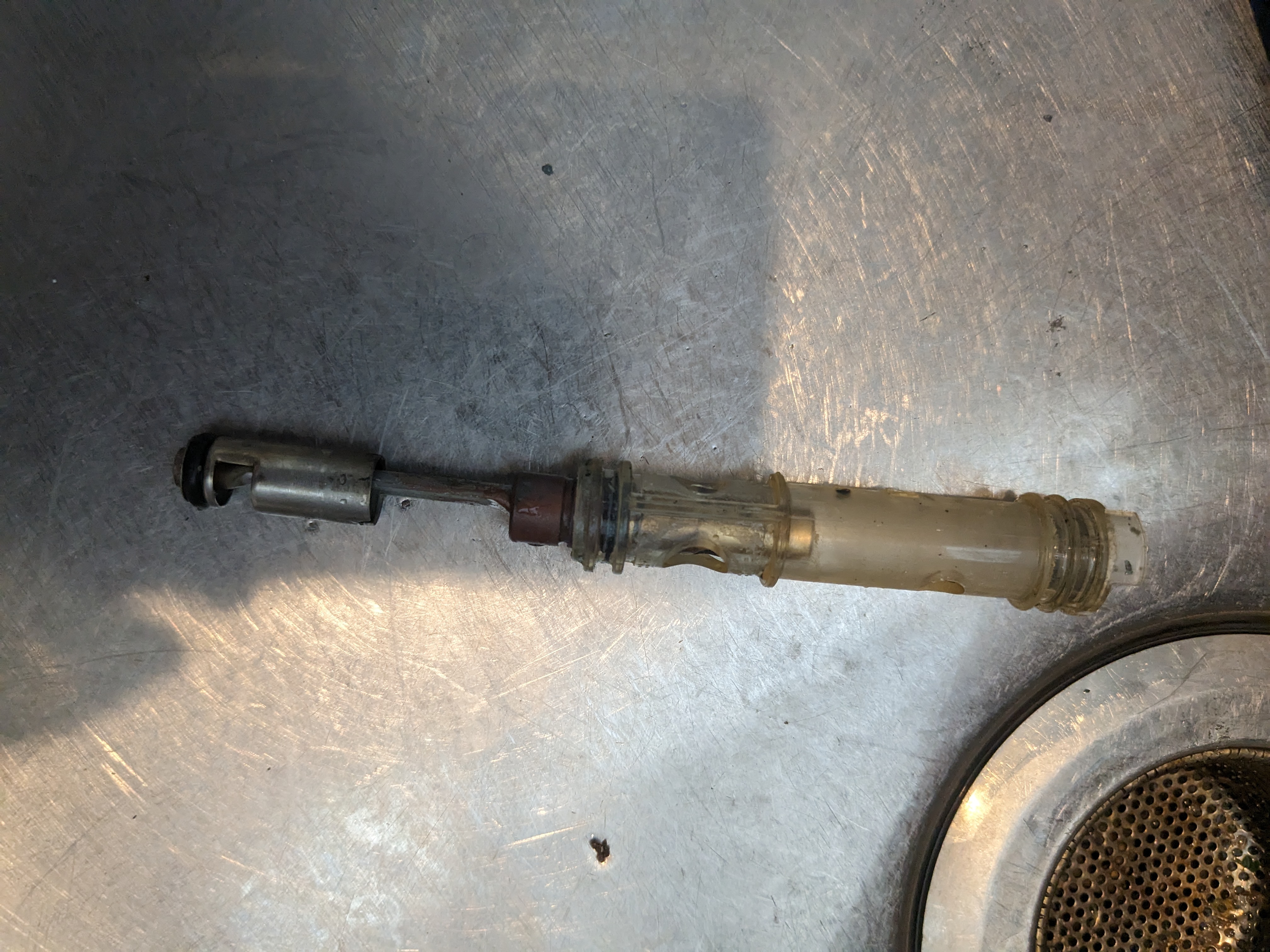 The cartridge was ready to be extracted from the faucet stem, however, it might be stuck, thread the lever screw in to provide a grip to pull the cartridge out. Then push the center piece out from the cartridge, replace all the grommets and rings, put on silicon grease to all those rubber parts.